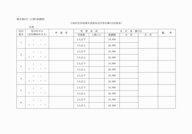 (3) 十島村定住促進生活資金助成金交付申請書(生活支援金) 様式第3号