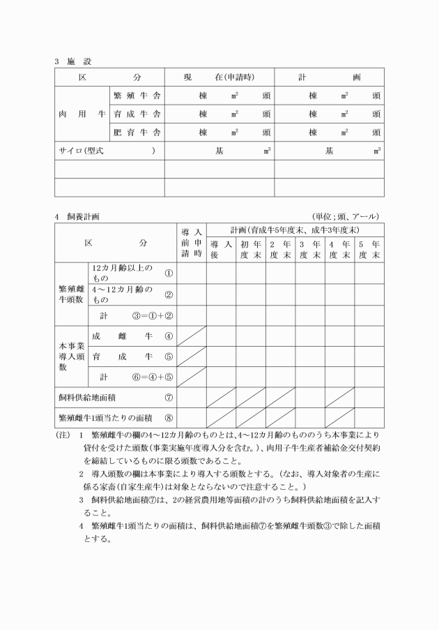 (1) 繁殖の用に供する肉用育成雌牛及び肉用成雌牛とし、育成雌牛とは生後4か月齢以上18か月齢未満のもの、成雌牛とは生後18か月齢以上4歳未満のものとする。また、導入対象家畜は、県内産のものとする。