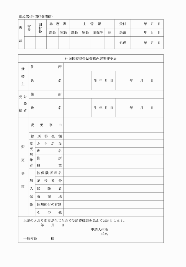 第1条 この規則は、十島村住民医療費の助成に関する条例(昭和49年条例第11号。以下「条例」という。)の施行に関し必要な事項を定めるものとする。