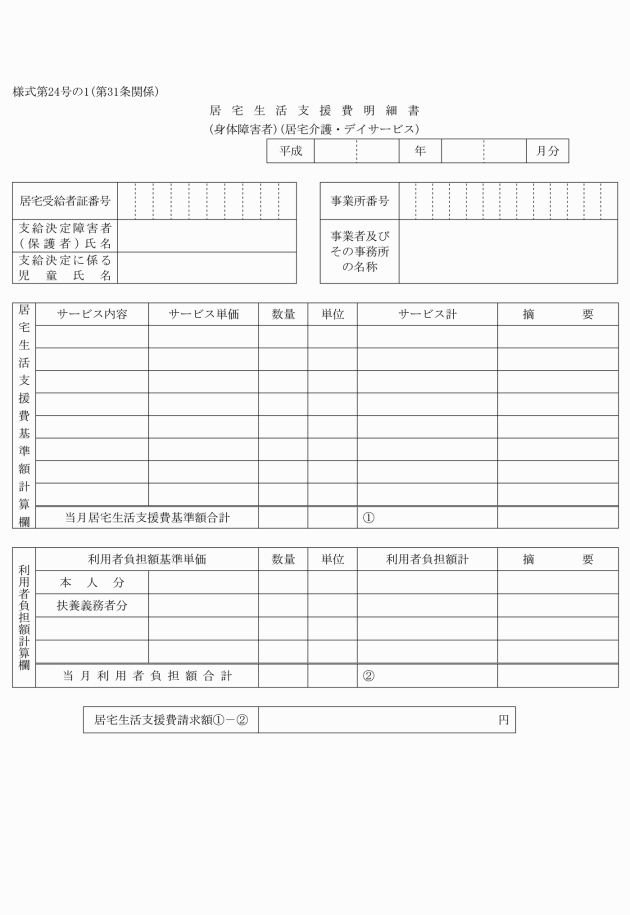 第24条 県知事から指定を受けた居宅介護事業者(以下「指定居宅介護事業者」という。)は、支給決定身体障害者と契約したとき、契約を終了したとき、及び契約支給量を変更したときは、居宅介護契約内容(居宅受給者証記載事項)報告書(様式第18号)により、その契約内容を村長に対し、遅滞なく報告しなければならない。