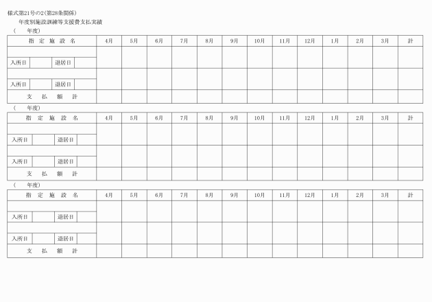 第28条 村長は、施設訓練等支援費の支給決定を行い受給者証を交付する際に、支給決定内容、サービスの受給状況等を記録し、管理するために、施設訓練等支援費支給管理台帳(様式第21号)を作成し、保管するものとする。