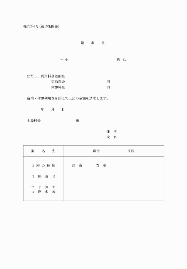 4 村長は、必要な記載がされた利用券を受付し、宿泊・休憩する予定の日付欄に押印等をして、利用希望者に交付するものとする。