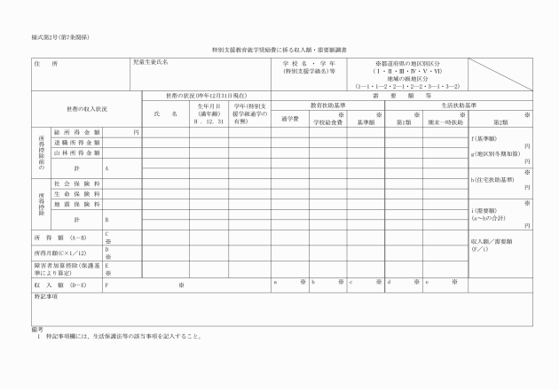 第6条 就学奨励費の支給を受けようとする者は、年度ごとに特別支援教育就学奨励費支給申請書(様式第1号)に必要な事項を記入し、当該児童生徒の在籍する学校の校長を通じて教育委員会に提出しなければならない。