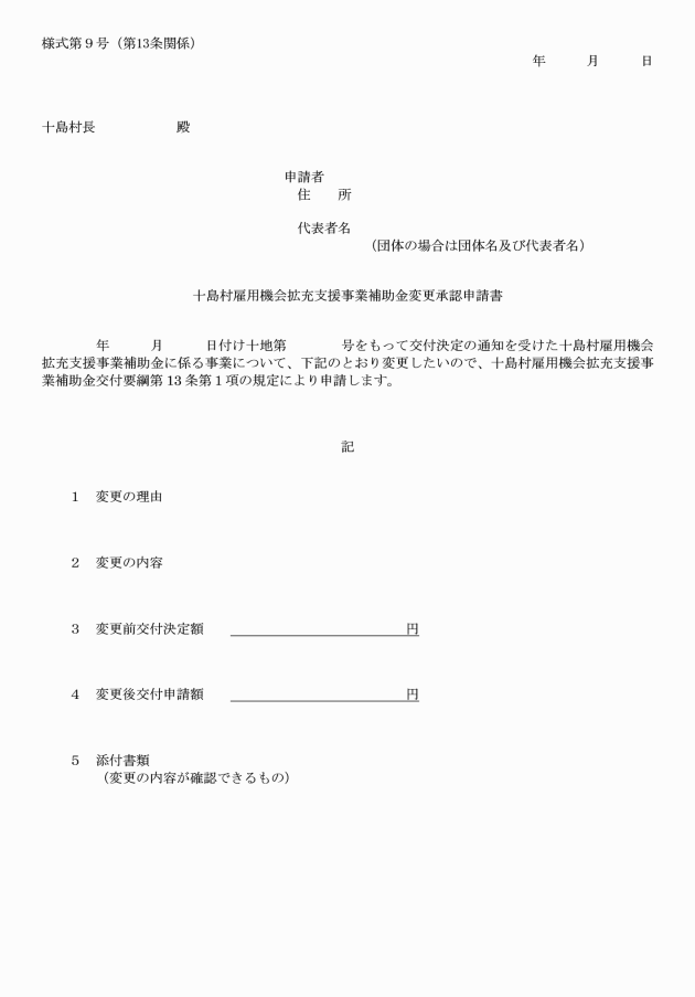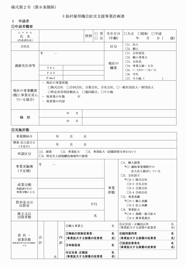 第8条 補助金の交付を受けようとする者(以下「申請者」という。)は、十島村雇用機会拡充支援事業補助金交付申請書(様式第1号)に、次に掲げる書類を村長に提出しなければならない。