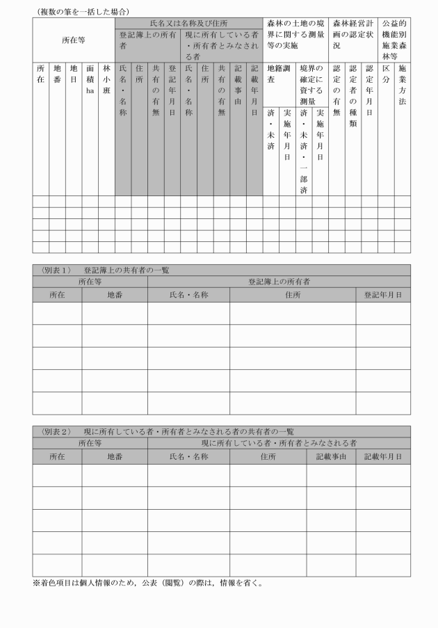 第7 林地台帳及び地図の公表の対象は、森林の土地の所有者(以下「土地所有者」という。)の氏名・住所等の個人情報が含まれないものとする。