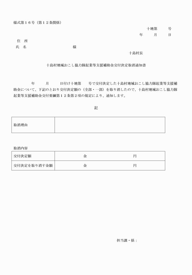 2 補助事業者は、補助事業を中止又は廃止しようとする場合は、十島村地域おこし協力隊起業等支援補助金補助事業中止(廃止)承認申請書(様式第7号)を村長に提出し、承認を得なければならない。